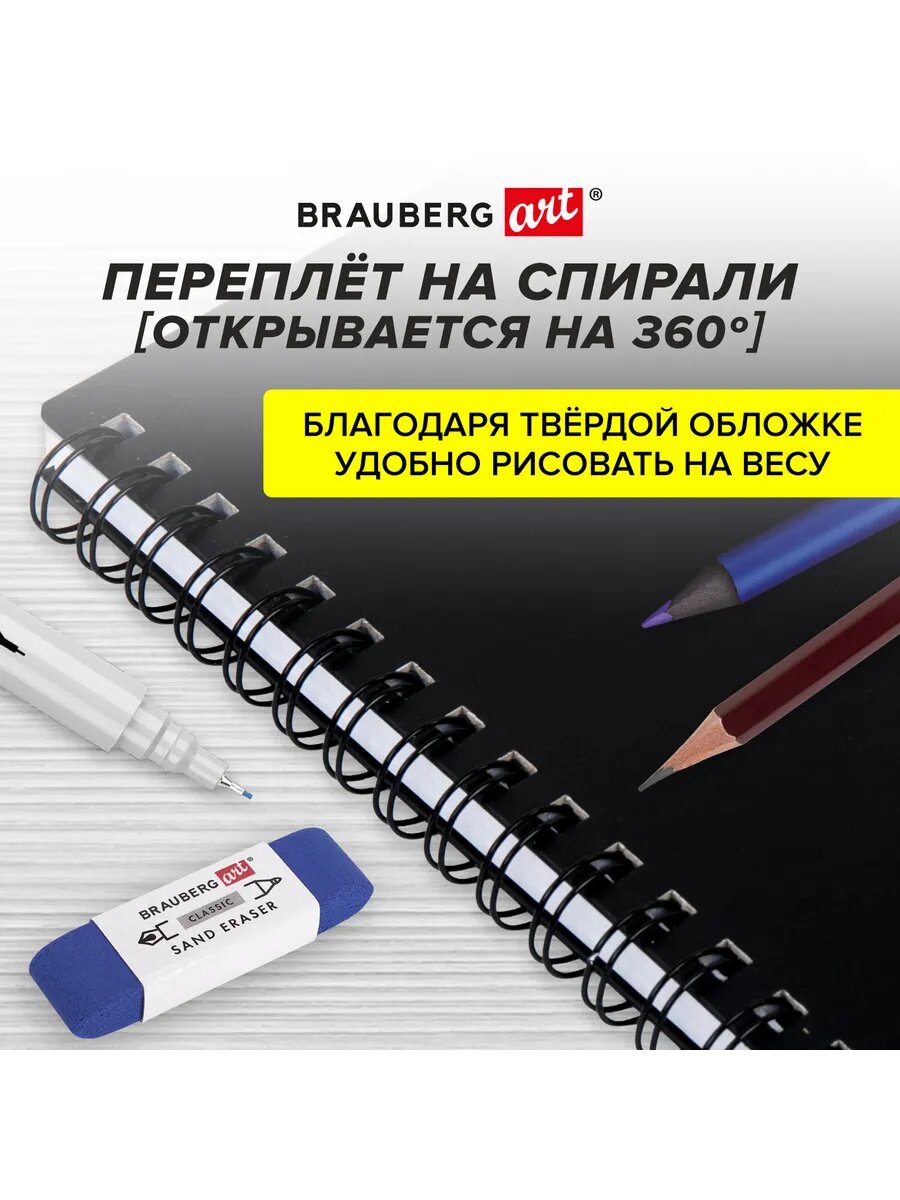 Блокнот-Скетчбук с белыми страницами для рисования эскизов 160 г/м2, 145х205 мм, 60 листов, гребень, твёрдая обложка Черная, Brauberg Art, 115072