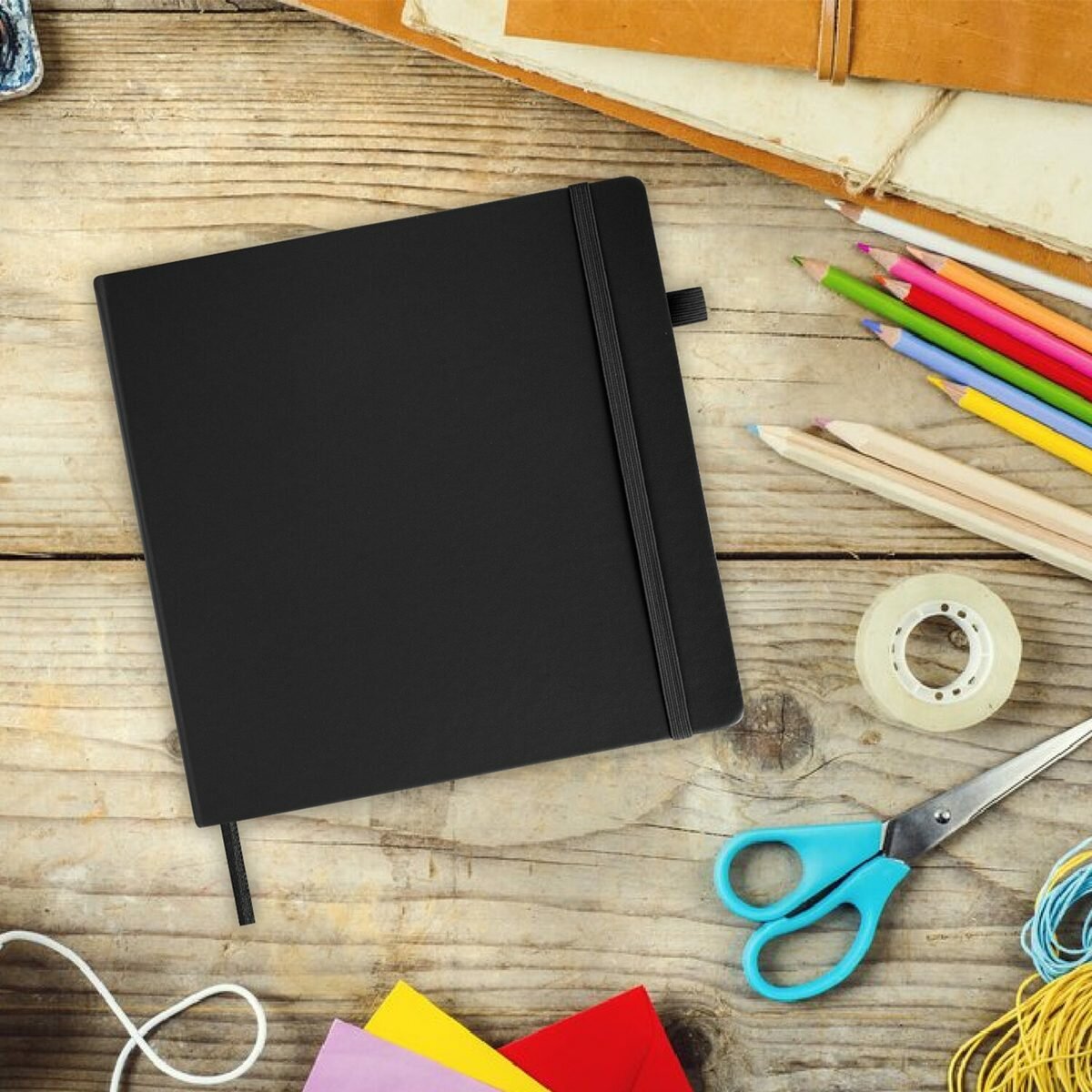 Скетчбук, черная бумага 140 г/м2, 200х200 мм, 80 л., кожзам, резинка, карман, BRAUBERG ART CLASSIC, черный, 113204