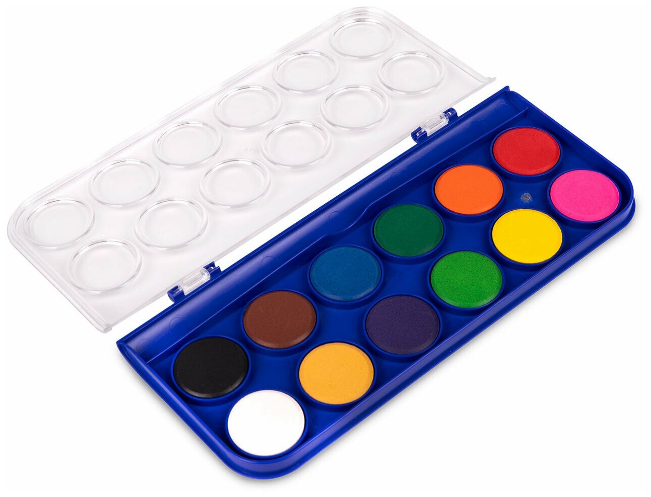 Купить Краски акварельные для рисования сухие Brauberg Premium 12 цветов, круглые кюветы 28 мм, 191743