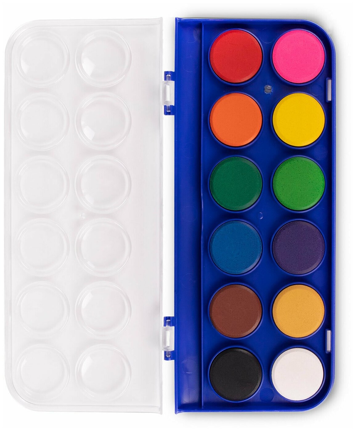 Комплект 15 шт, Краски акварельные сухие BRAUBERG "PREMIUM" 12 цветов, круглые кюветы 28 мм, пластиковый пенал с европодвесом, 191743