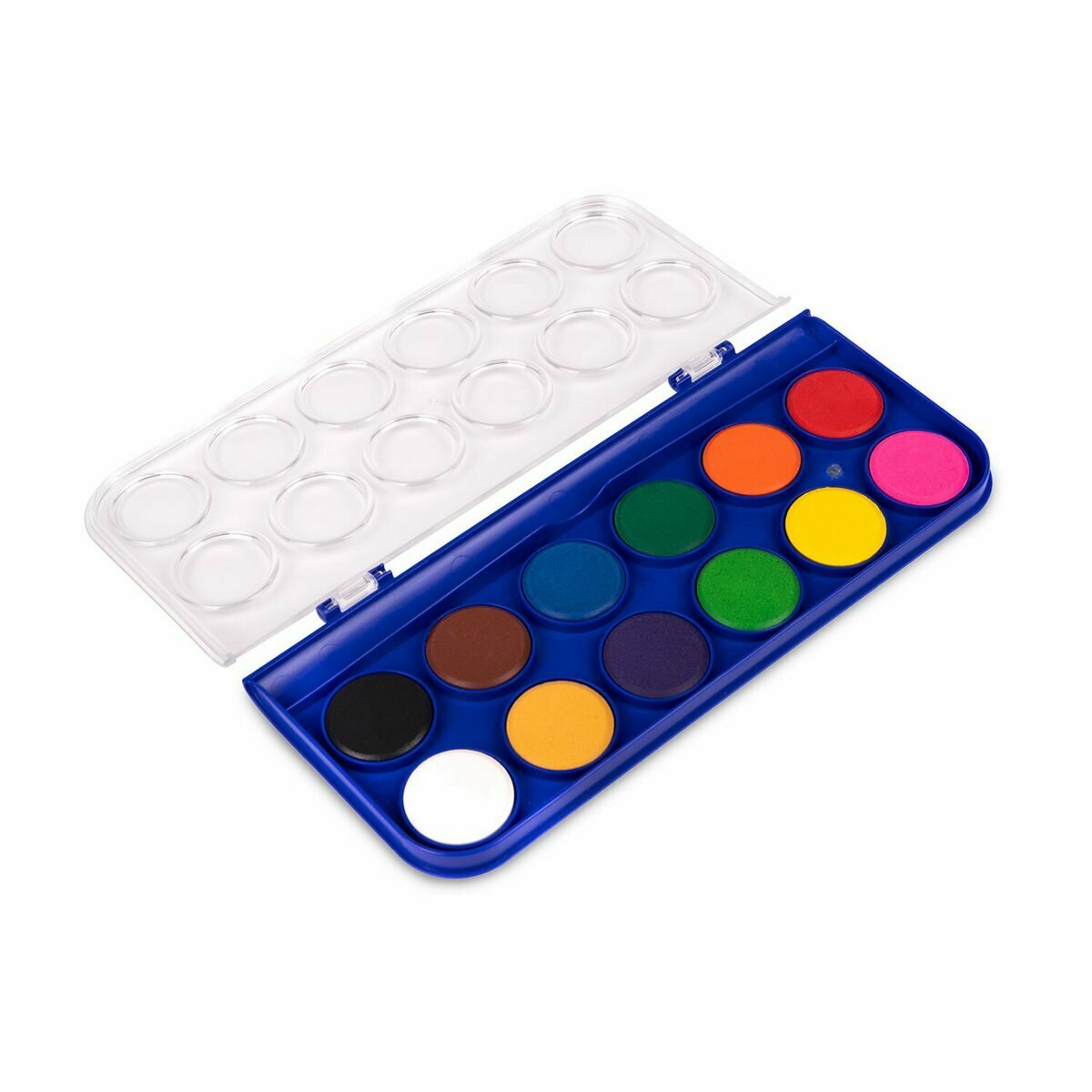 Комплект 15 шт, Краски акварельные сухие BRAUBERG "PREMIUM" 12 цветов, круглые кюветы 28 мм, пластиковый пенал с европодвесом, 191743