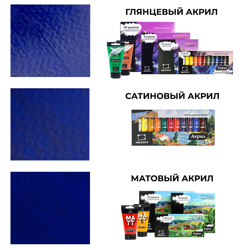 Набор матовых акриловых красок Малевичъ, сатиновый финиш, 12 цветов по 12 мл интересное: