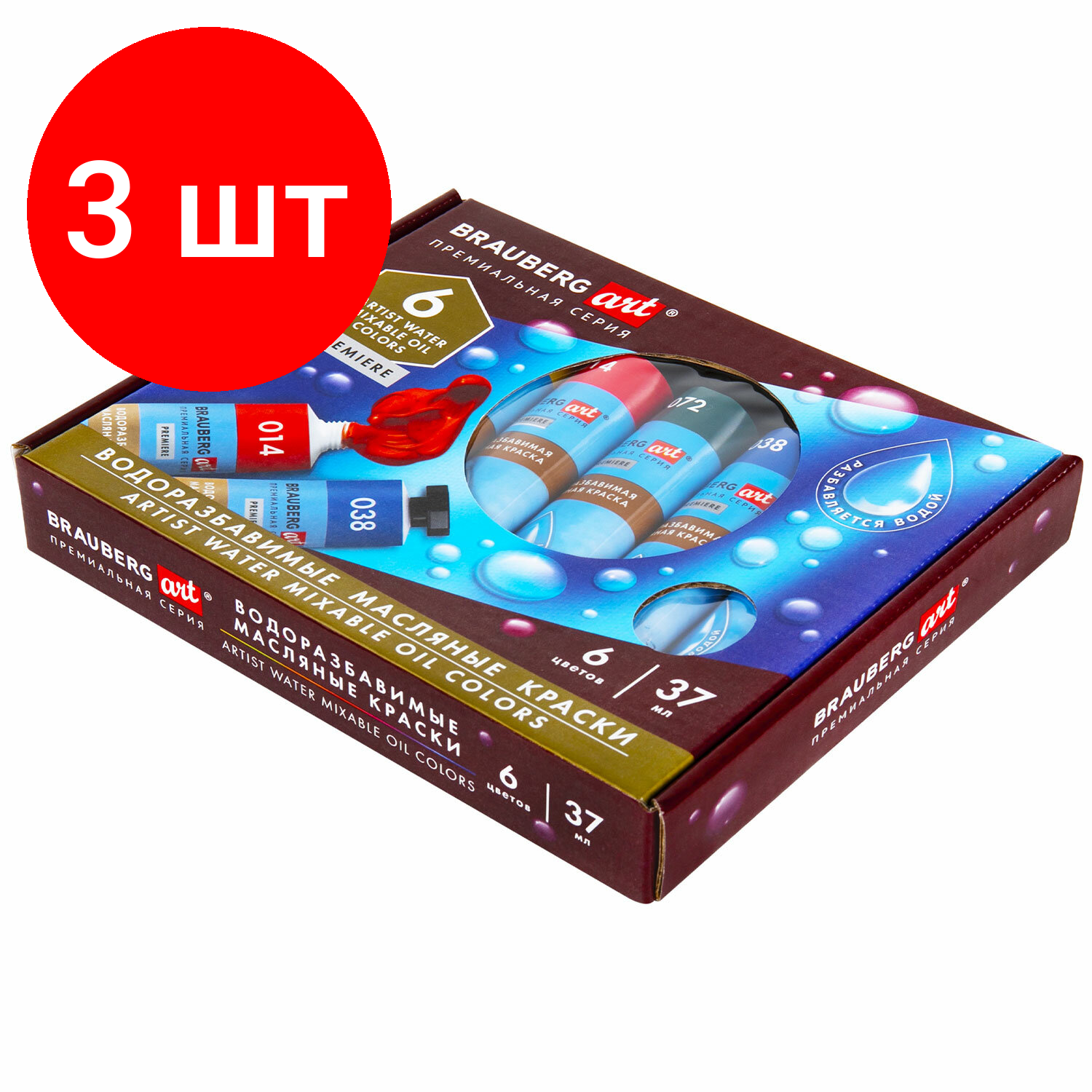 Купить Комплект 3 шт, Краски масляные водоразбавимые художественные, 6 цветов по 37 мл в тубах, BRAUBERG ART PREMIERE, 192292
