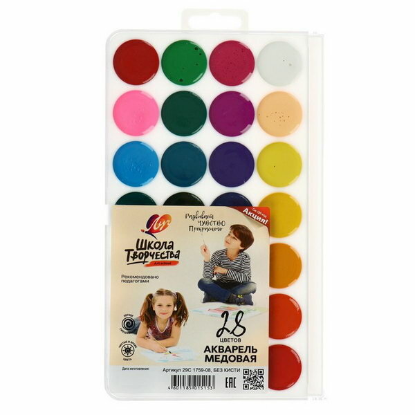 Краски акварельные Луч "Школа творчества", 28 цветов, медовые, без кисти,пластиковая коробка, 29С 1759-08