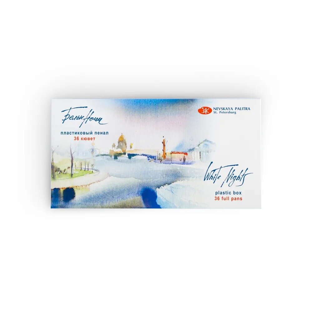 Акварель Зхк Белые ночи художественная 36 цветов, кюветы, пласт. упак., палитра