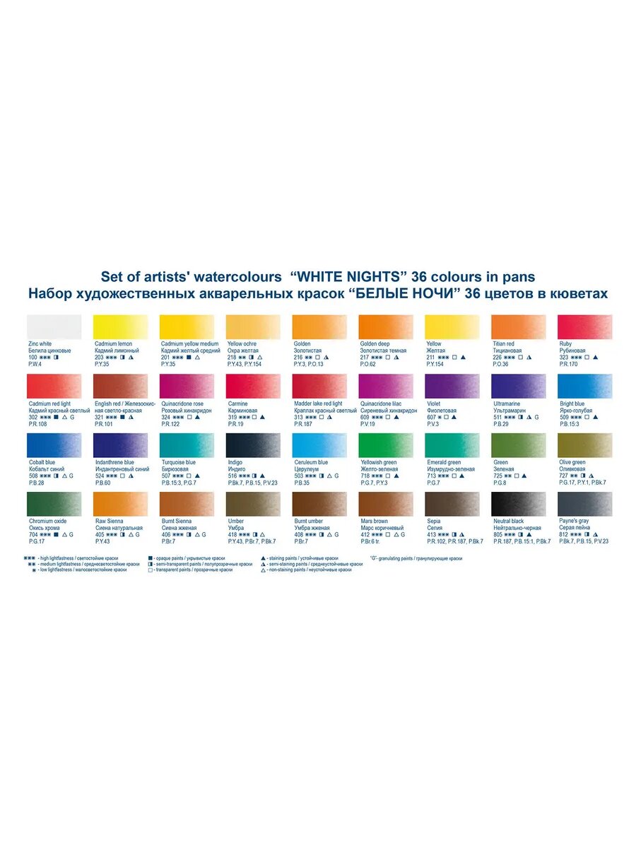 Краски акварельные художественные 36 цветов, «Белые ночи», кювет 2.5 мл, с палитрой