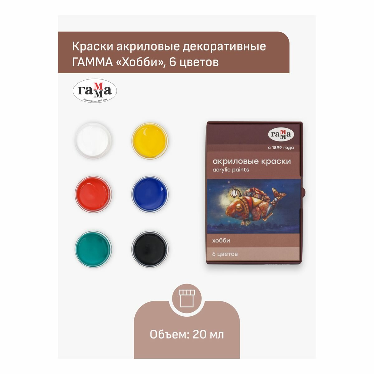 Краски акриловые декоративные Гамма "Хобби", 6 цветов, 20мл