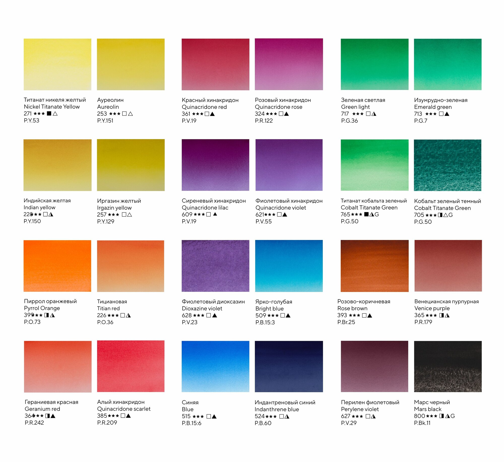 | Дополнительная информация | цвет - голубой или ярко-голубой, зеленая умбра, изумрудно-зеленый или зеленый оригинальный, кадмий желтый средний, кадмий красный светлый, кадмий лимонный, карминовый, нейтрально-черный, охра желтая, ультрамарин, умбра жженая или марс коричневый; упаковка: пластиковый пенал, картонная коробка |