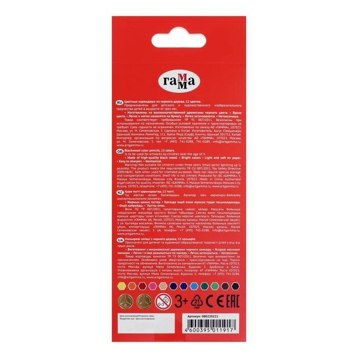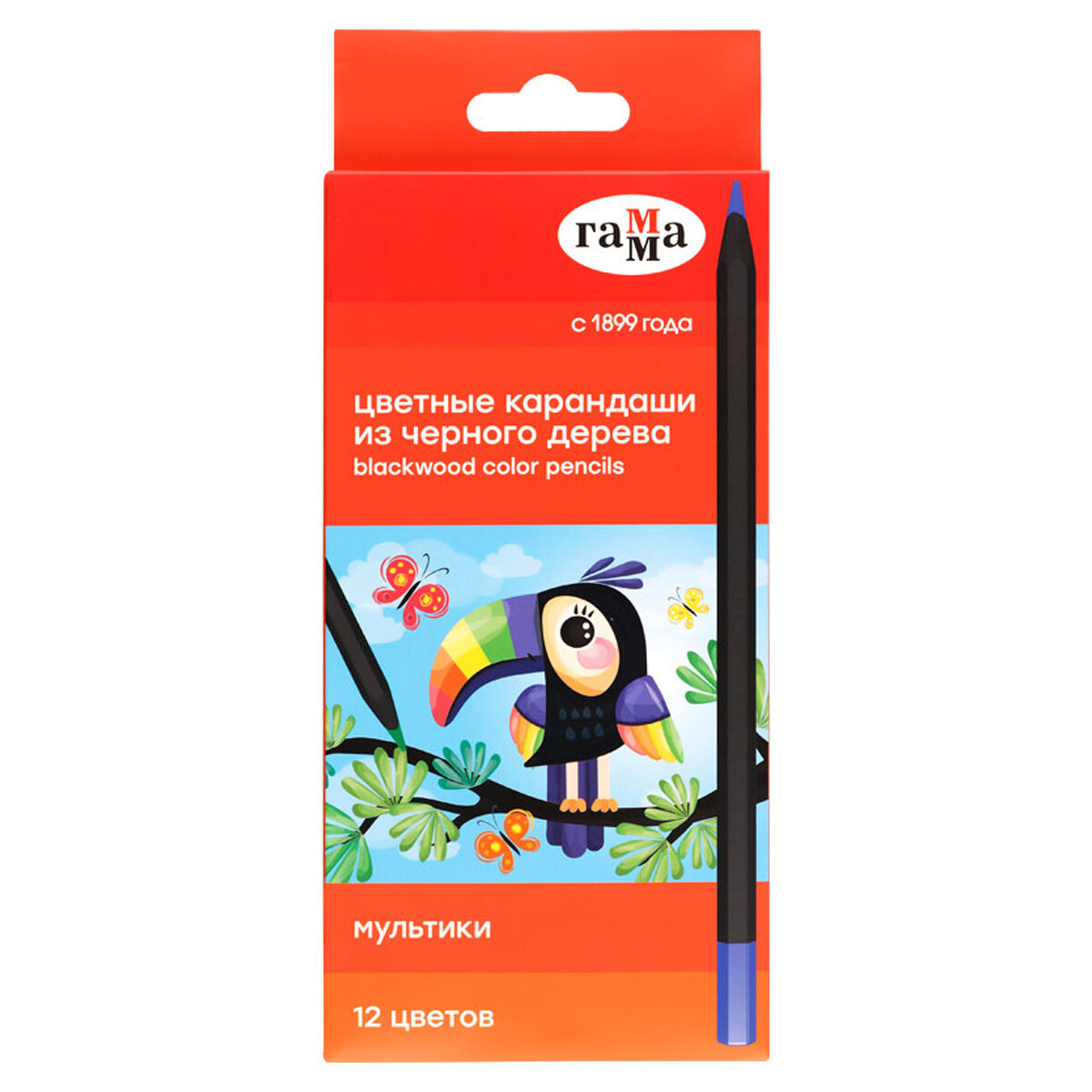 Купить Карандаши цветные 12цв. Гамма. Мультики черное дерево, шестигранные, картонная коробка