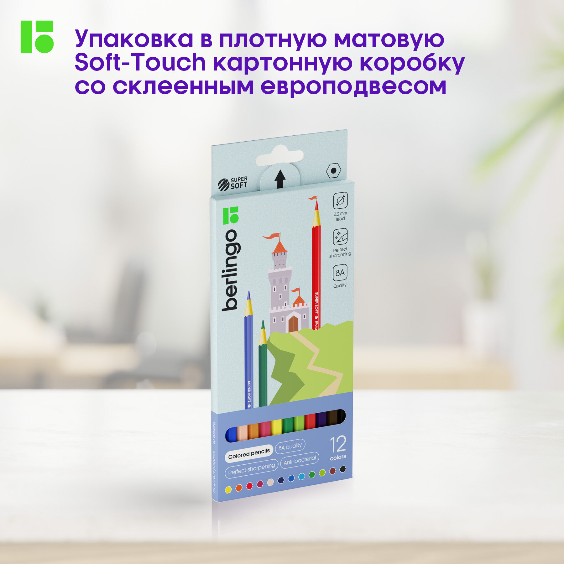 Карандаши цветные Berlingo "SuperSoft. Замки", 12цв., заточен., картон, европодвес (арт. 297230)