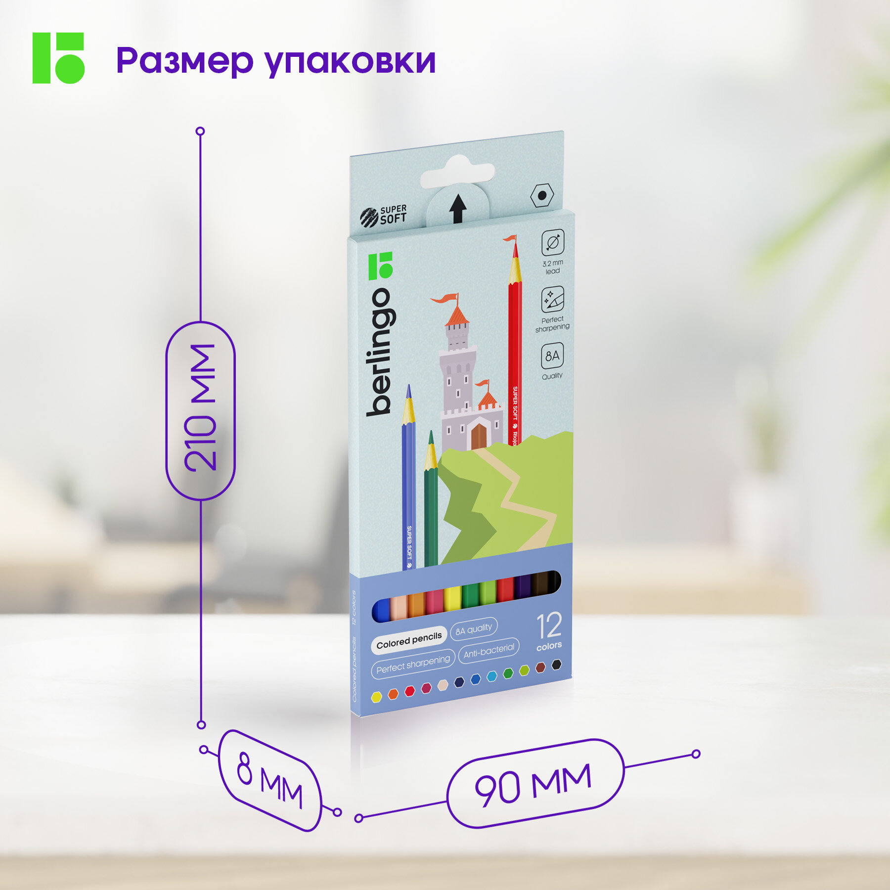 Купить Цветные карандаши Berlingo "SuperSoft. Замки" для школы 12 цветов, шестигранные / Набор цветных карандашей для рисования