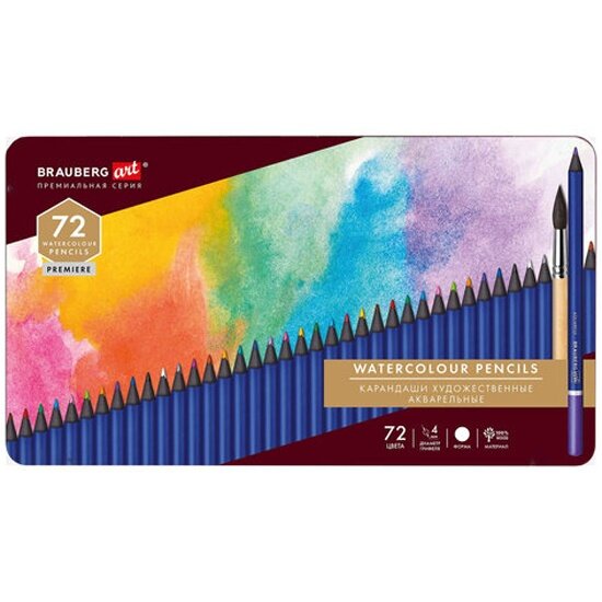 Купить Карандаши Brauberg художественные цветные акварельные, 72 цвета, 4 мм, металлический кейс, ART PREMIERE, 181925
