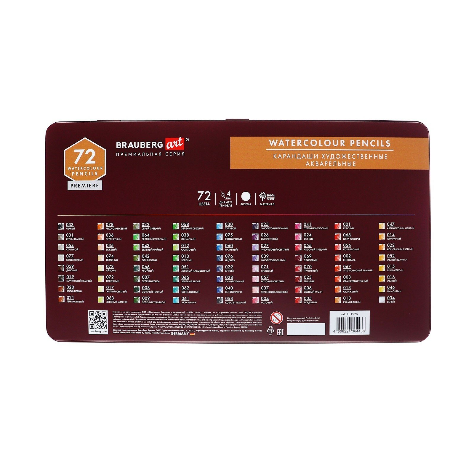 Карандаши художественные цветные акварельные, 72 цвета, 4 мм, металлический кейс, BRAUBERG ART PREMIERE, 181925
