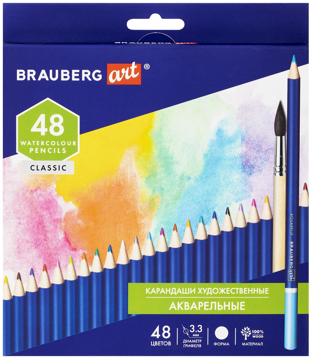 Карандаши художественные цветные акварельные BRAUBERG ART CLASSIC, 48 цветов, грифель 3.3 мм, 181532