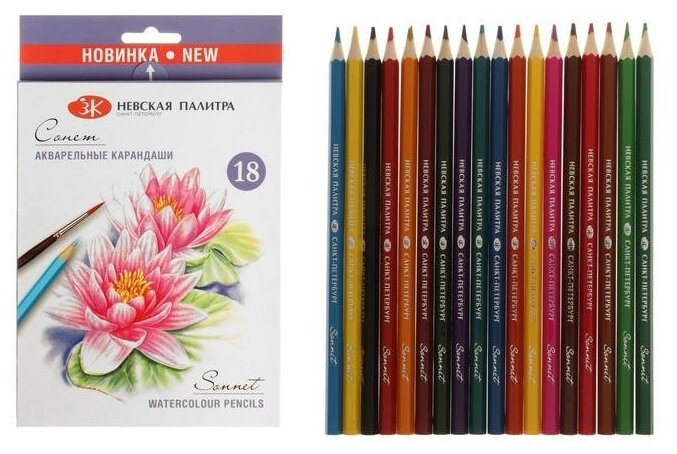 Набор карандашей Сонет 81411437, акварельные, 18 цв, 18шт, шестигранные, HB, картонная упаковка интересное: