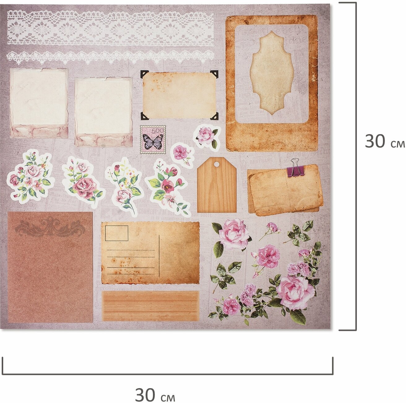 Цветная Washi-бумага для скрапбукинга, для открыток, творчества, декора 30х30 см Винтаж, двусторонняя, 12 листов, 12 дизайнов, 662766
