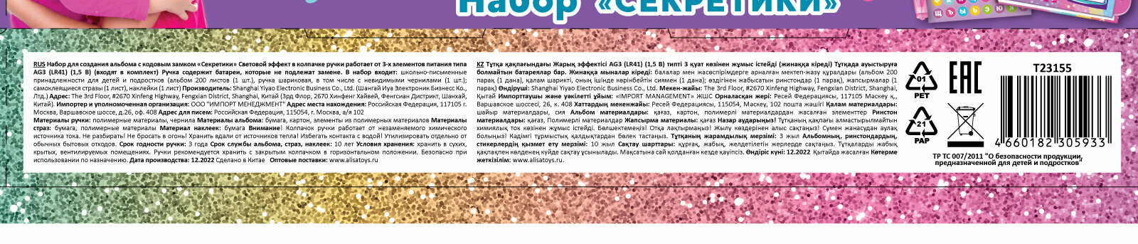 Набор для создания альбома с кодовым замком LUKKY LIFESTYLE Секретики, с ручкой с невидимыми чернилами, скетчбук для девочек, в подарочной коробке 25x22x3,30 см интересное: