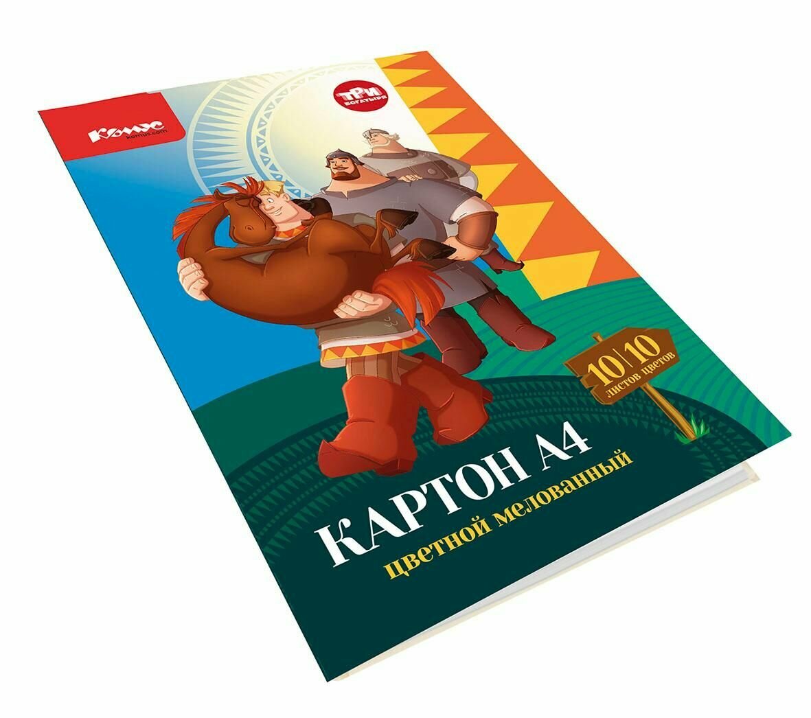 Цветной картон Комус Три богатыря, А4, мелованный, 10 листов, 10 цветов
