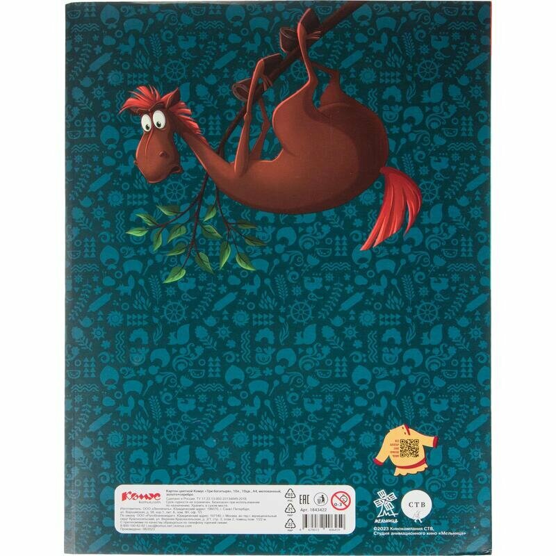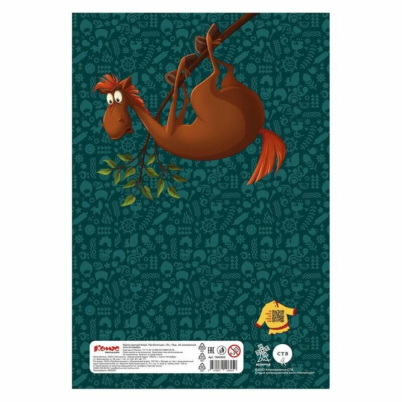 Картон цветной А4 Комус Три Богатыря, 10 листов, 10 цветов, мелованный , односторонний