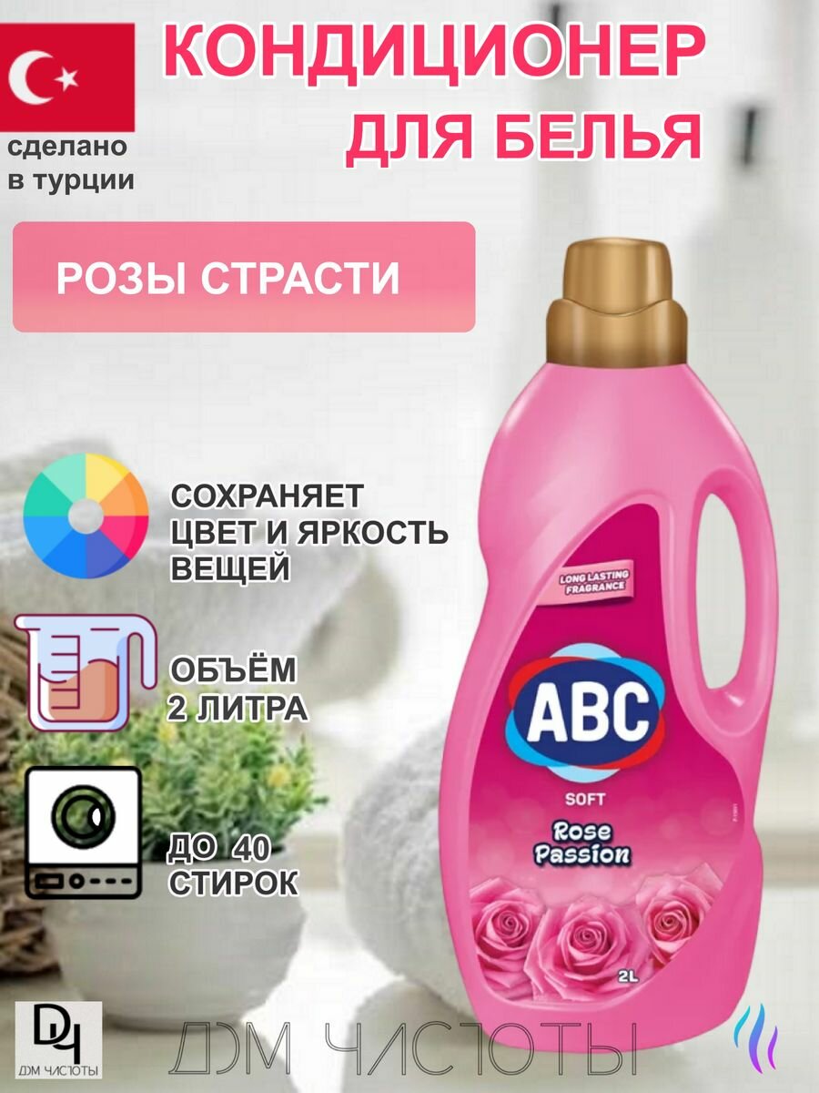 Кондиционер для белья АВС Розы Страсти, 2 л. / Смягчитель для стирки белья / АБЦ Турция