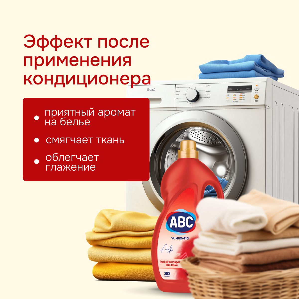 | Эффект | антибактериальный / антистатический / легкая глажка / смягчение ткани / устранение неприятных запахов |