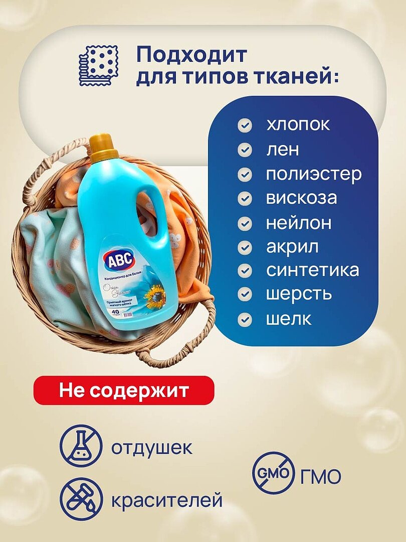 АБЦ / ABC - Кондиционер для белья с приятным ароматом шелка Ocean glamour (Океан), 10 стирок, 1 л