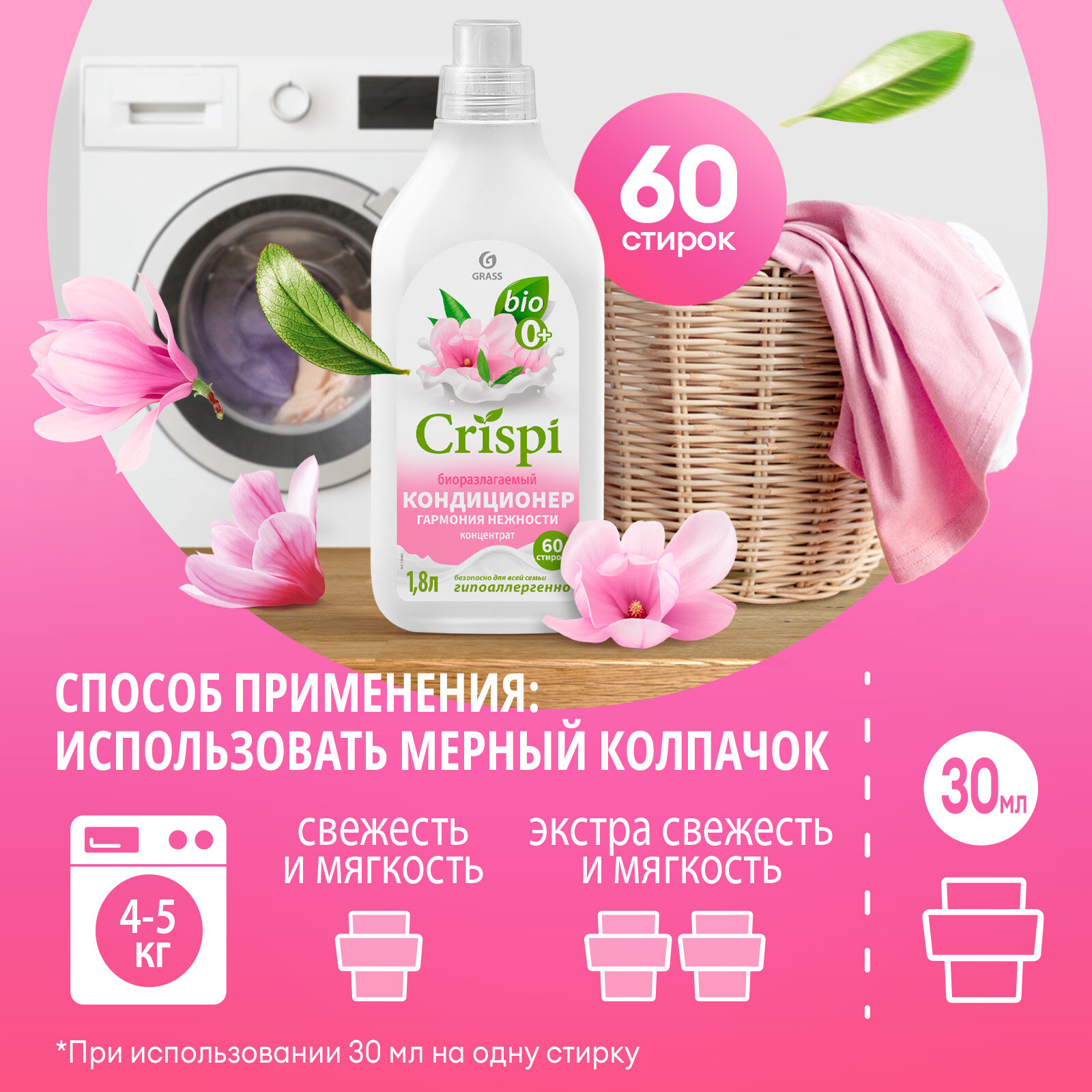 Купить Кондиционер-ополаскиватель для белья Grass CRISPI Гармония нежности, концентрат, экологичный, 1.8 л