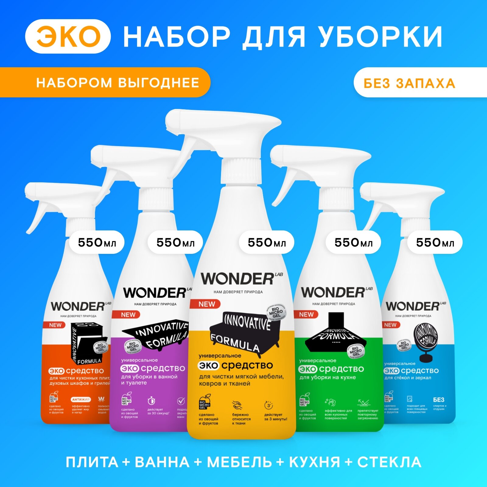 Универсальный набор чистящих и моющих эко средств для уборки всего дома WONDER LAB, без запаха