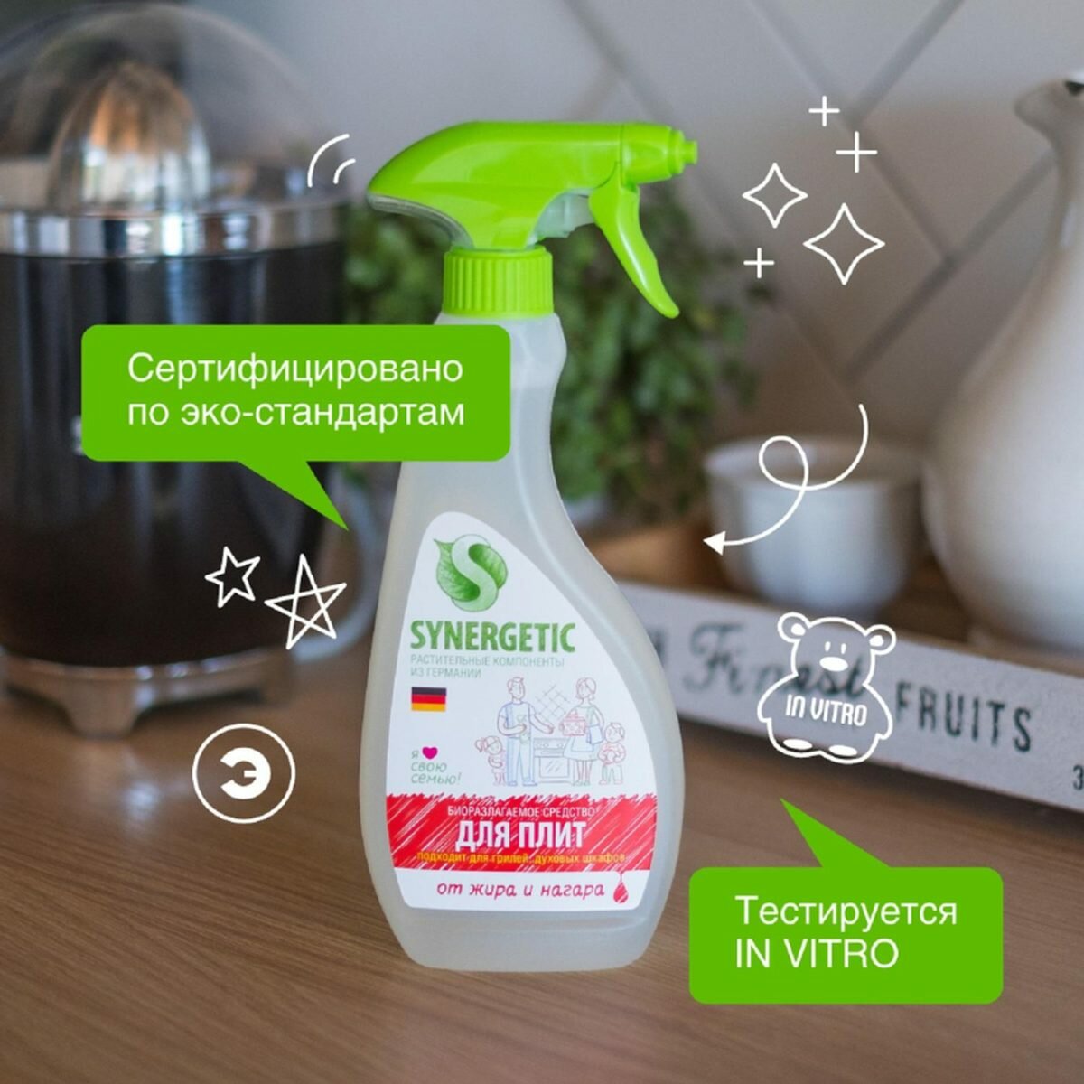 Synergetic, Средство для чистки кухонных плит, грилей и духовых шкафов, 500 мл