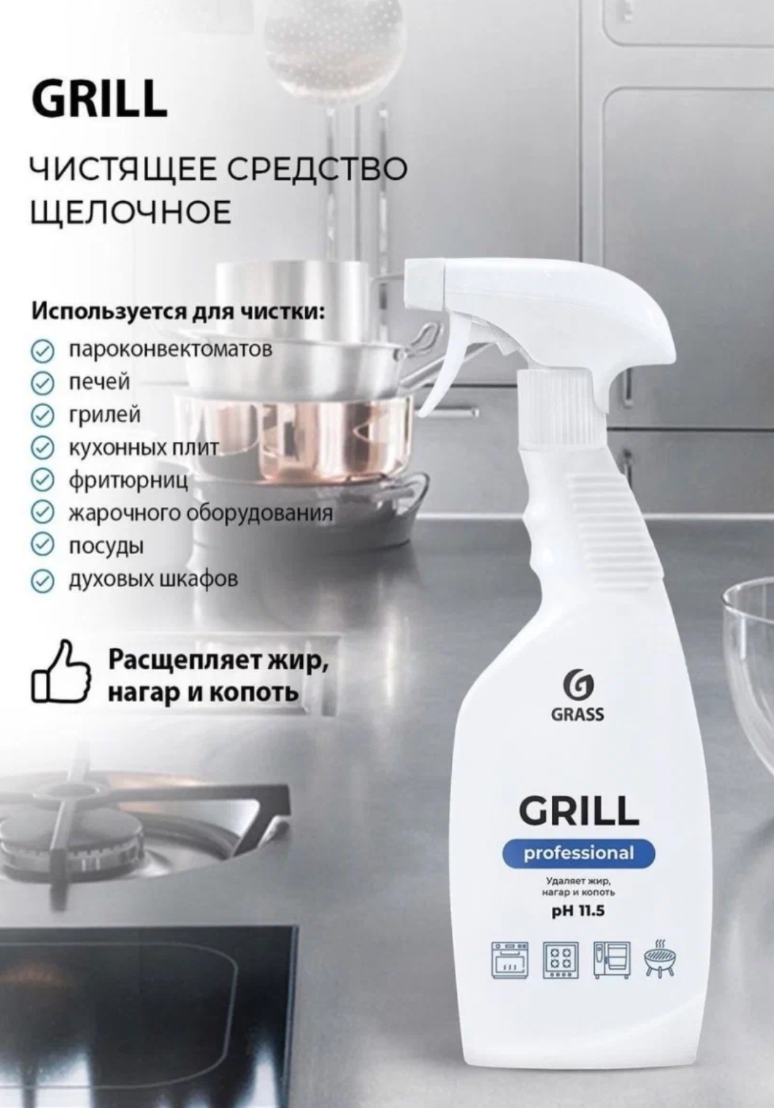 GRASS/ Чистящее средство GRILL Professional, антижир, жидкость для удаления жира, нагара и копоть, 600 мл