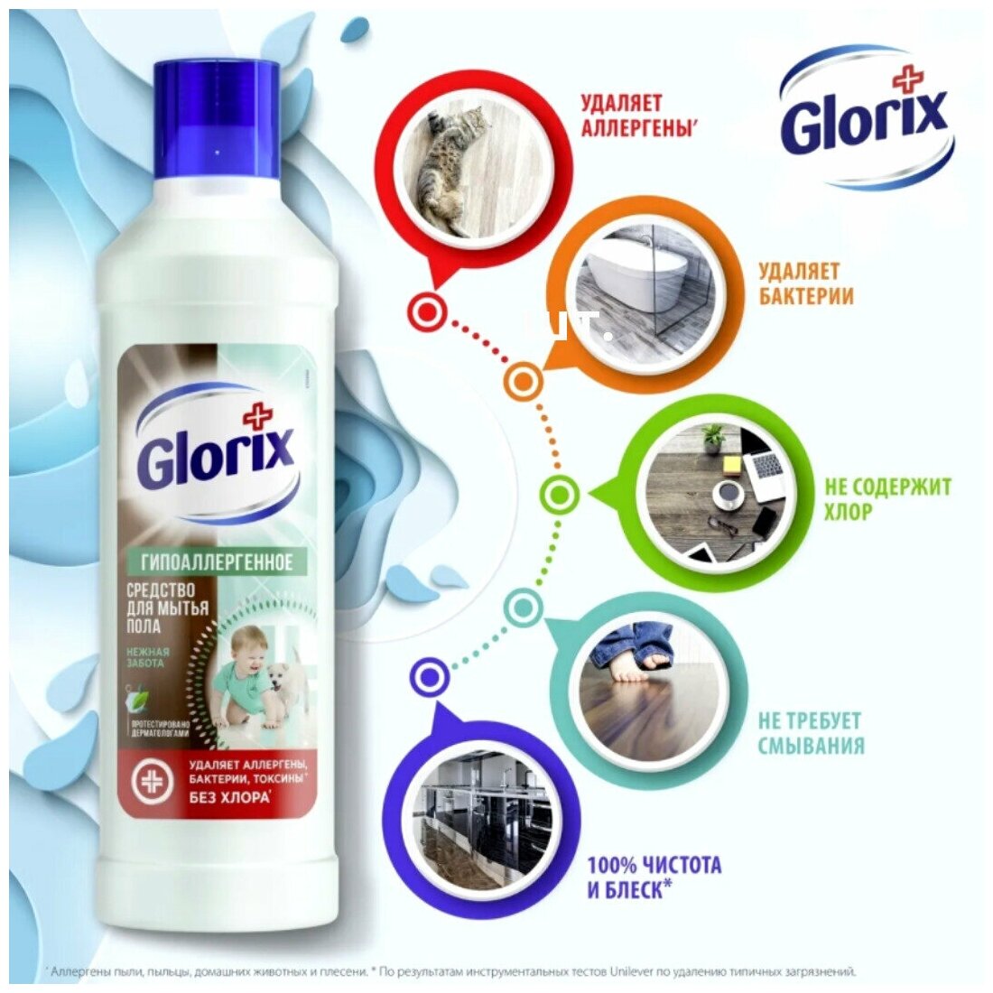 Средство для мытья пола Глорикс Цветущая яблоня и Ландыш удаляет бактерии и препятствует налипанию пыли, 1 л