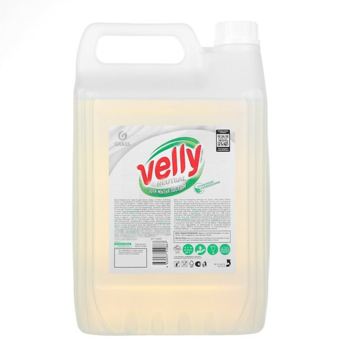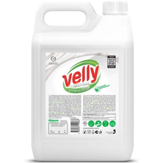 Средство гель для мытья посуды Grass Velly neutral моющее универсальное, для детской посуды 5 л.