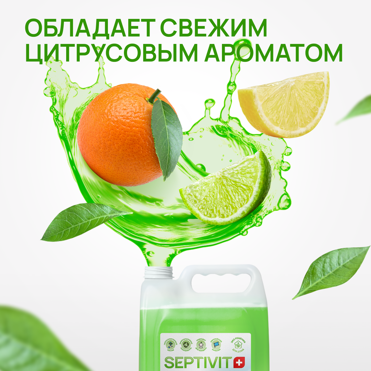 Средство для мытья посуды, овощей и фруктов SEPTIVIT / Гель для мытья посуды Септивит, Сочный цитрус 5л
