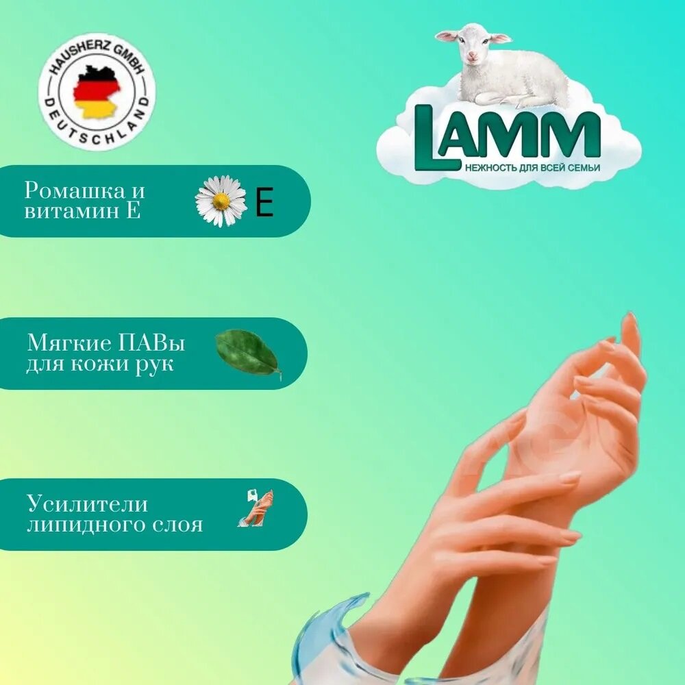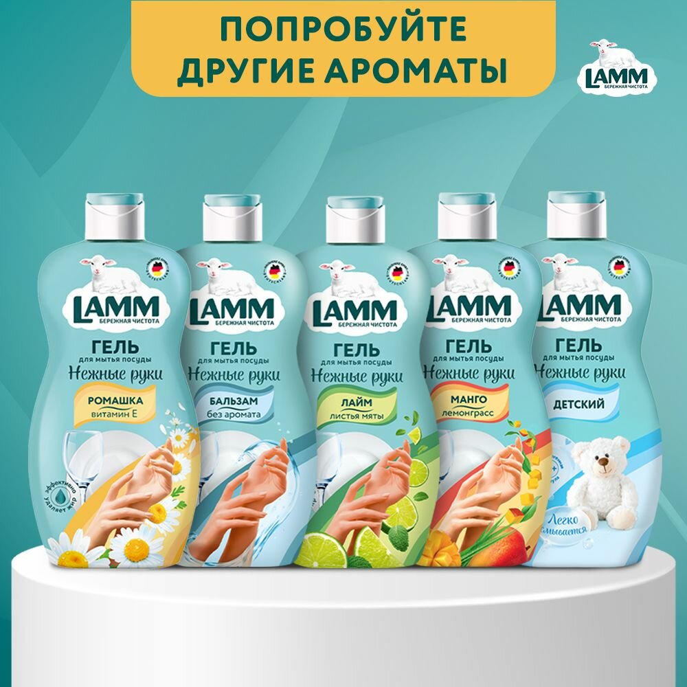 LAMM Нежные руки средство для мытья посуды Бальзам 450 мл, без аромата, без отдушек, без запаха, без фосфатов