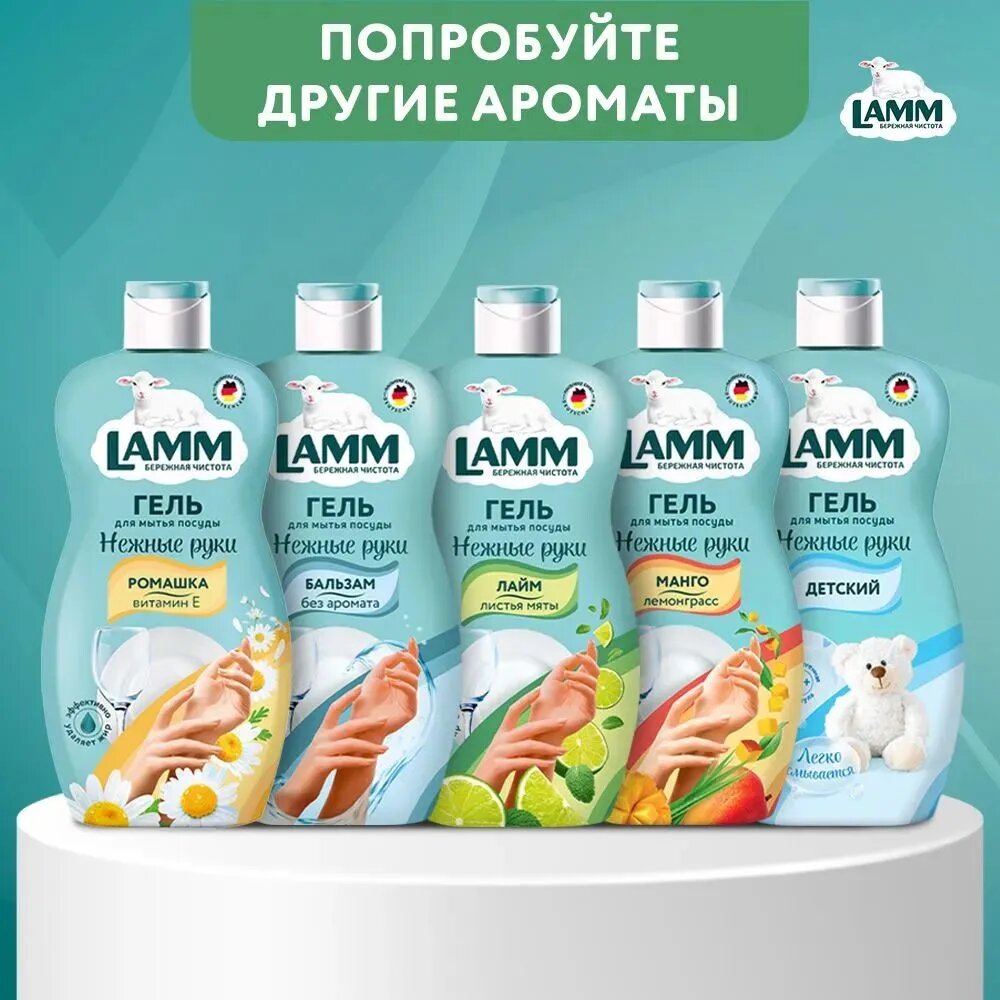 LAMM Нежные руки средство для мытья посуды Бальзам 450 мл, без аромата, без отдушек, без запаха, без фосфатов