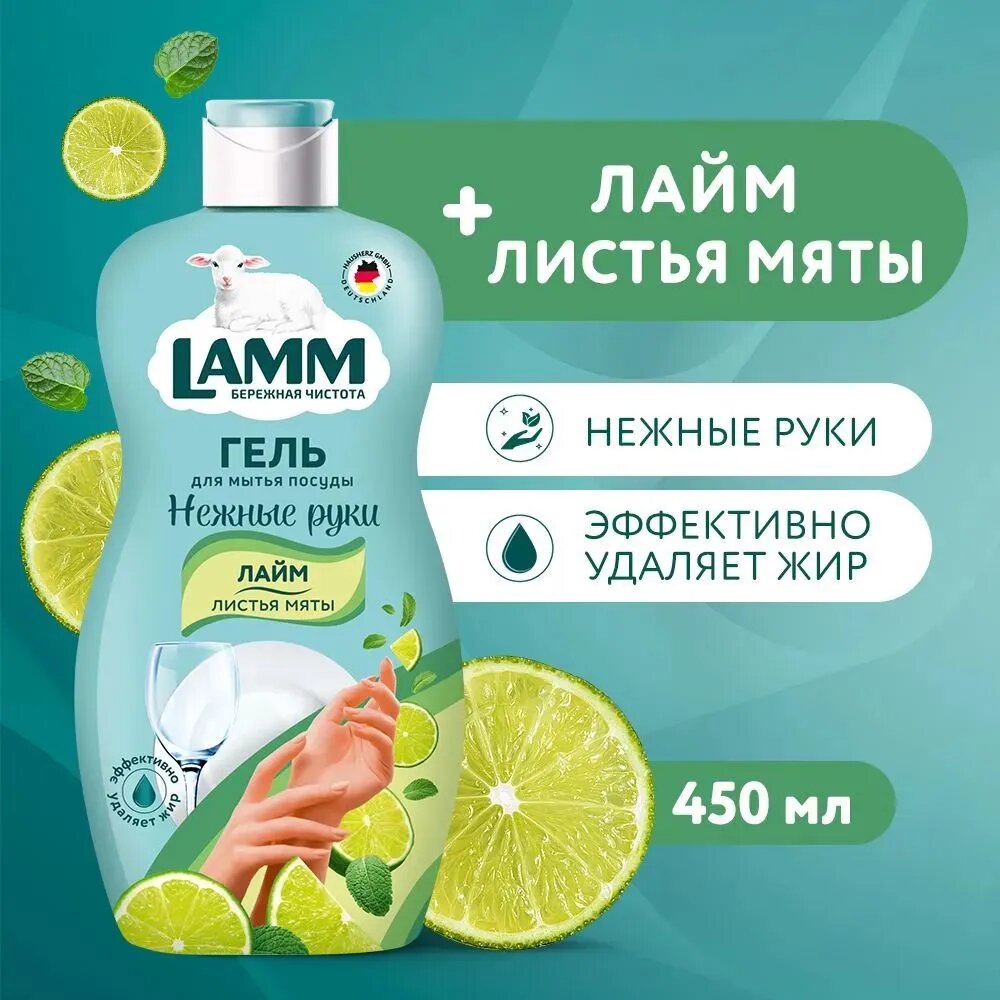 Купить LAMM Средство для мытья посуды Лайм и листья мяты 450мл