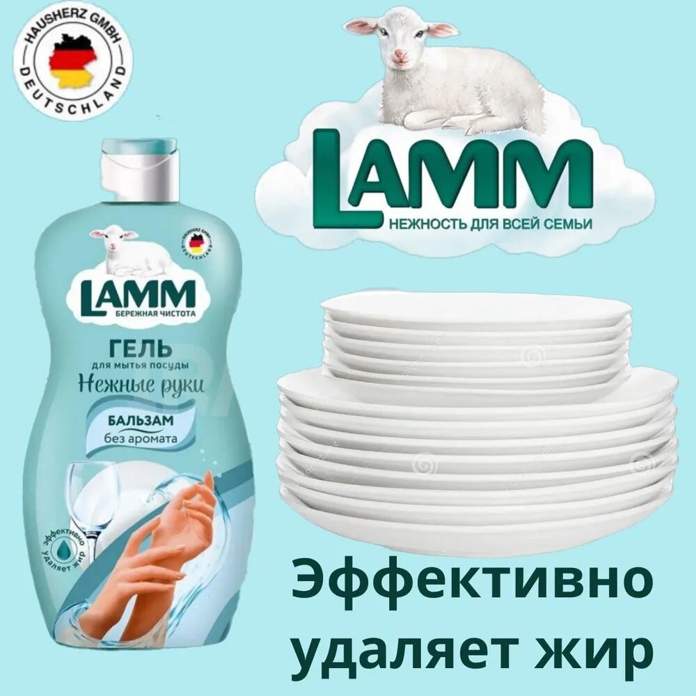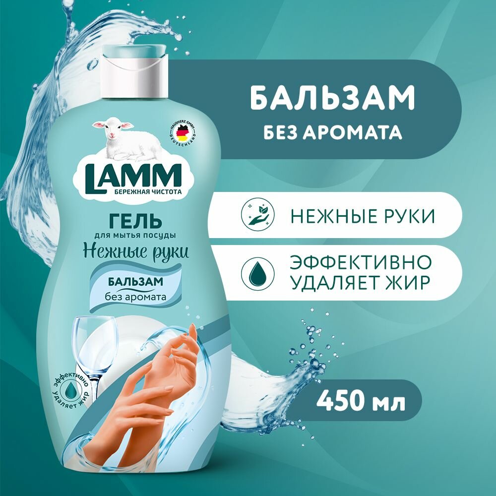 LAMM Нежные руки средство для мытья посуды Бальзам 450 мл, без аромата, без отдушек, без запаха, без фосфатов