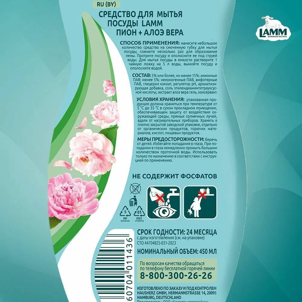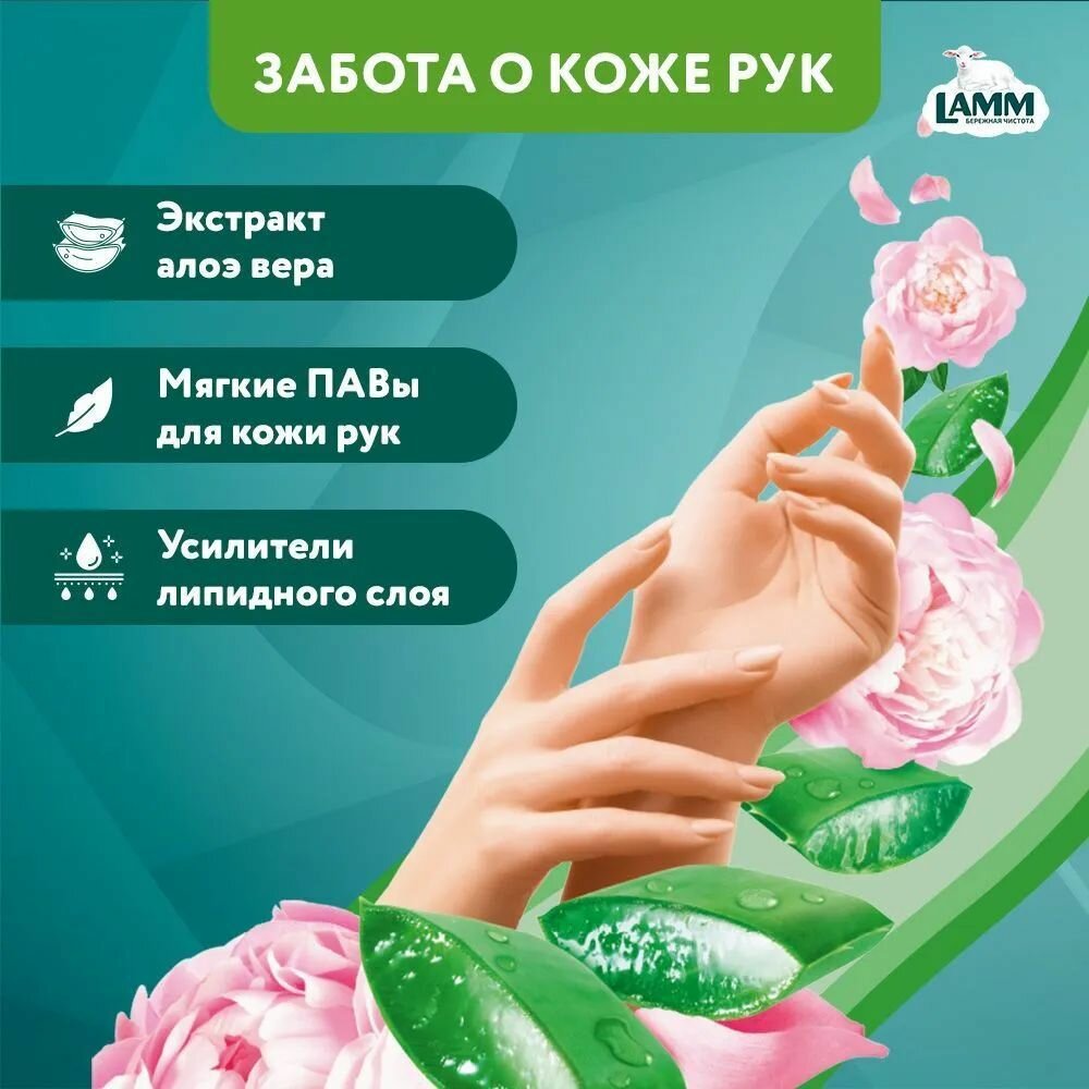 Купить LAMM Пион и Алоэ Вера Средство для Мытья Посуды, Нежные Руки, 450 мл