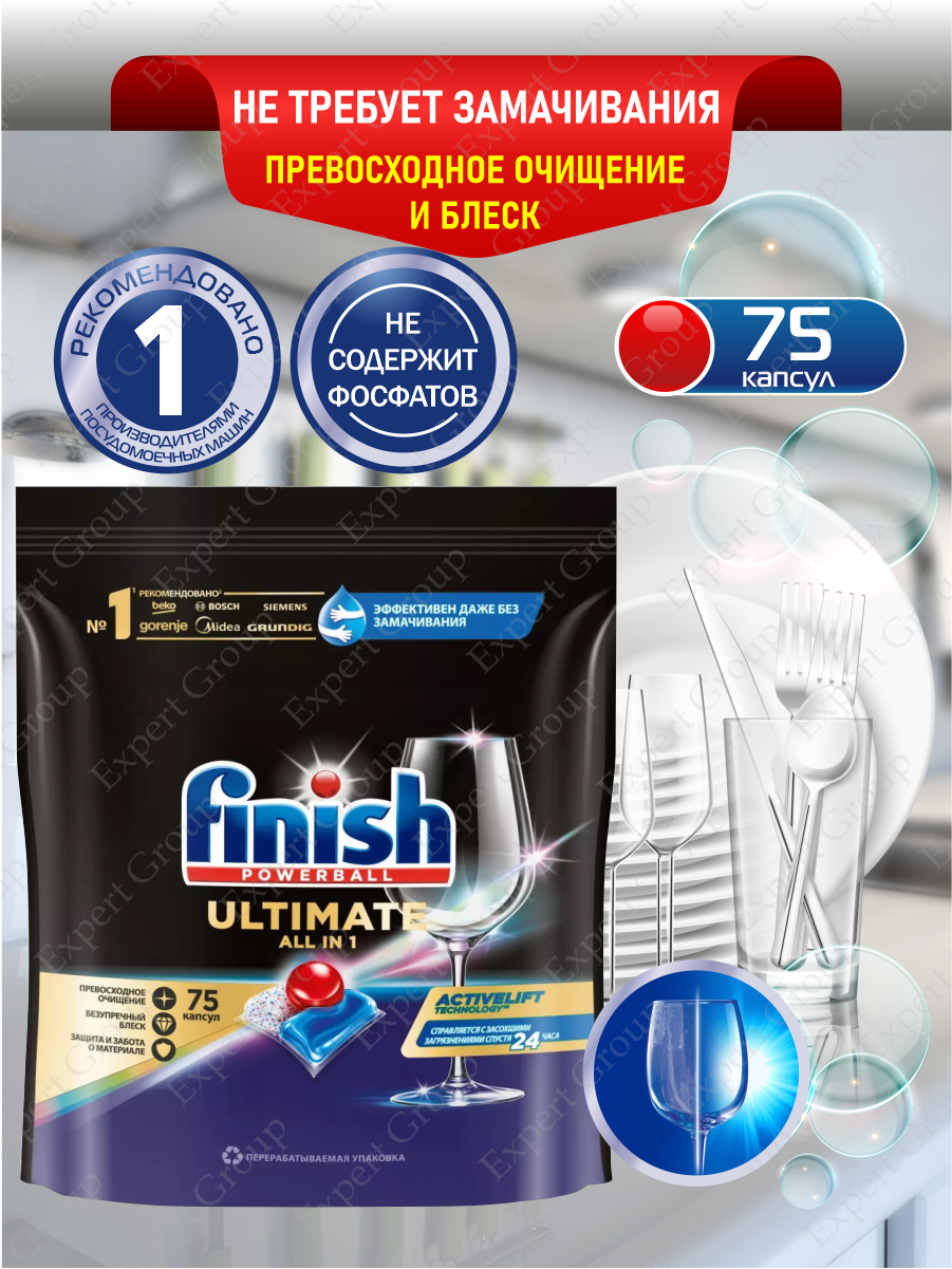 Капсулы для посудомоечных машин Finish Ultimate бесфосфатные, 75 шт