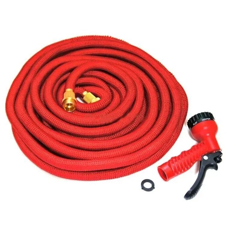 Шланг садовый красный растягивающийся 25 метров для полива с распылителем, с металлическим соединениям\Красный turbyshlang