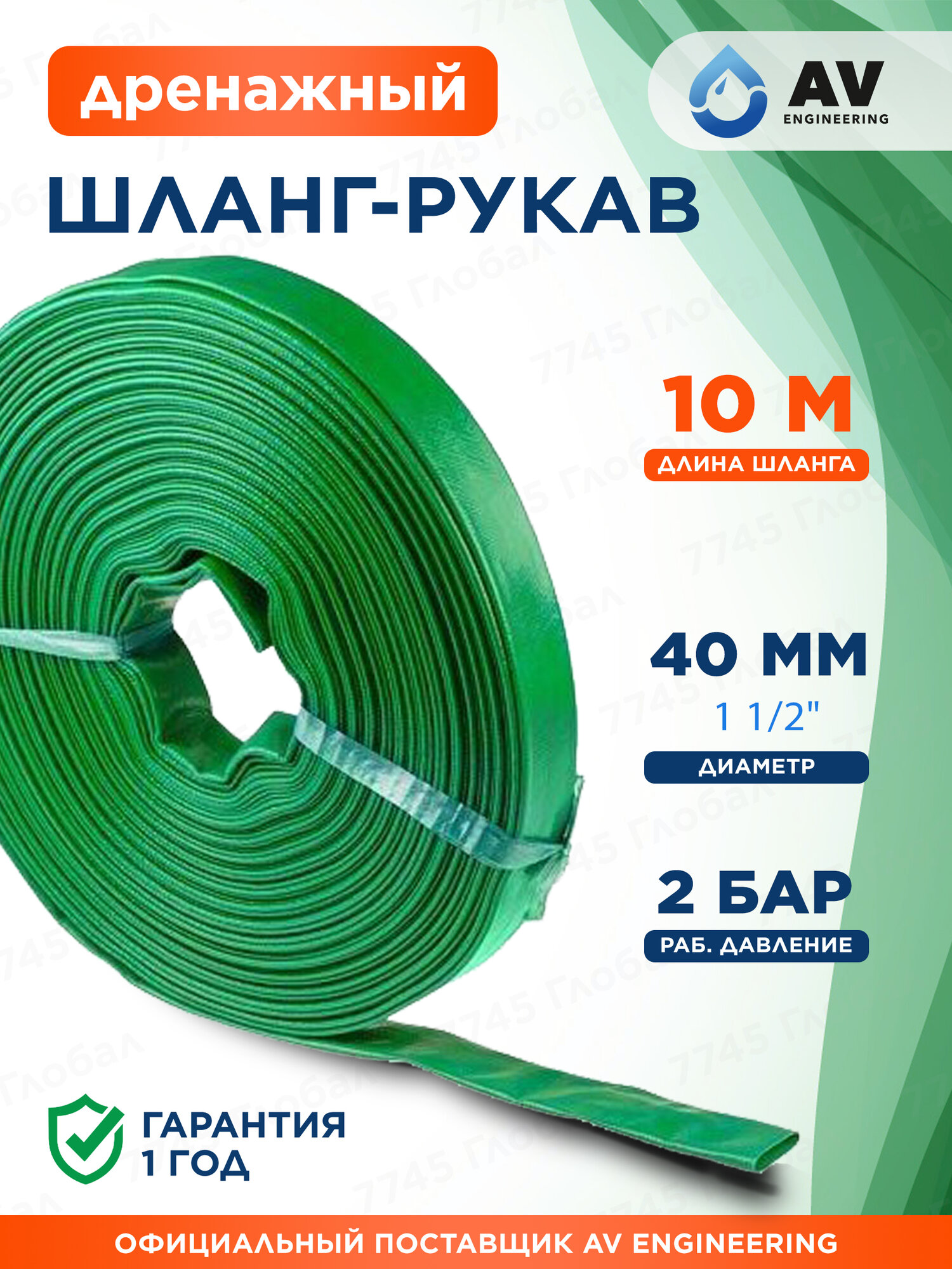 Шланг-рукав дренажный для дренажного насоса и мотопомп AV ENGINEERING ПЭ 1 1/2" 25 м (AVE9012540)