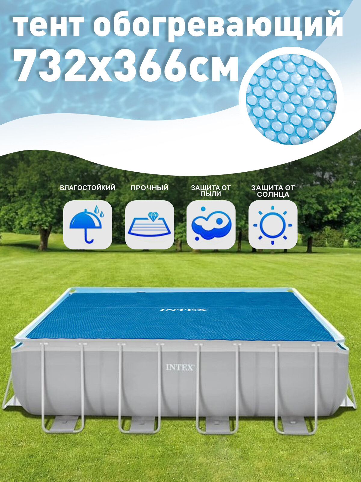 | Дополнительная информация | Покрывало - тент пленка для бассейна Intex Solar Cover 732 х 366 см 28017 |