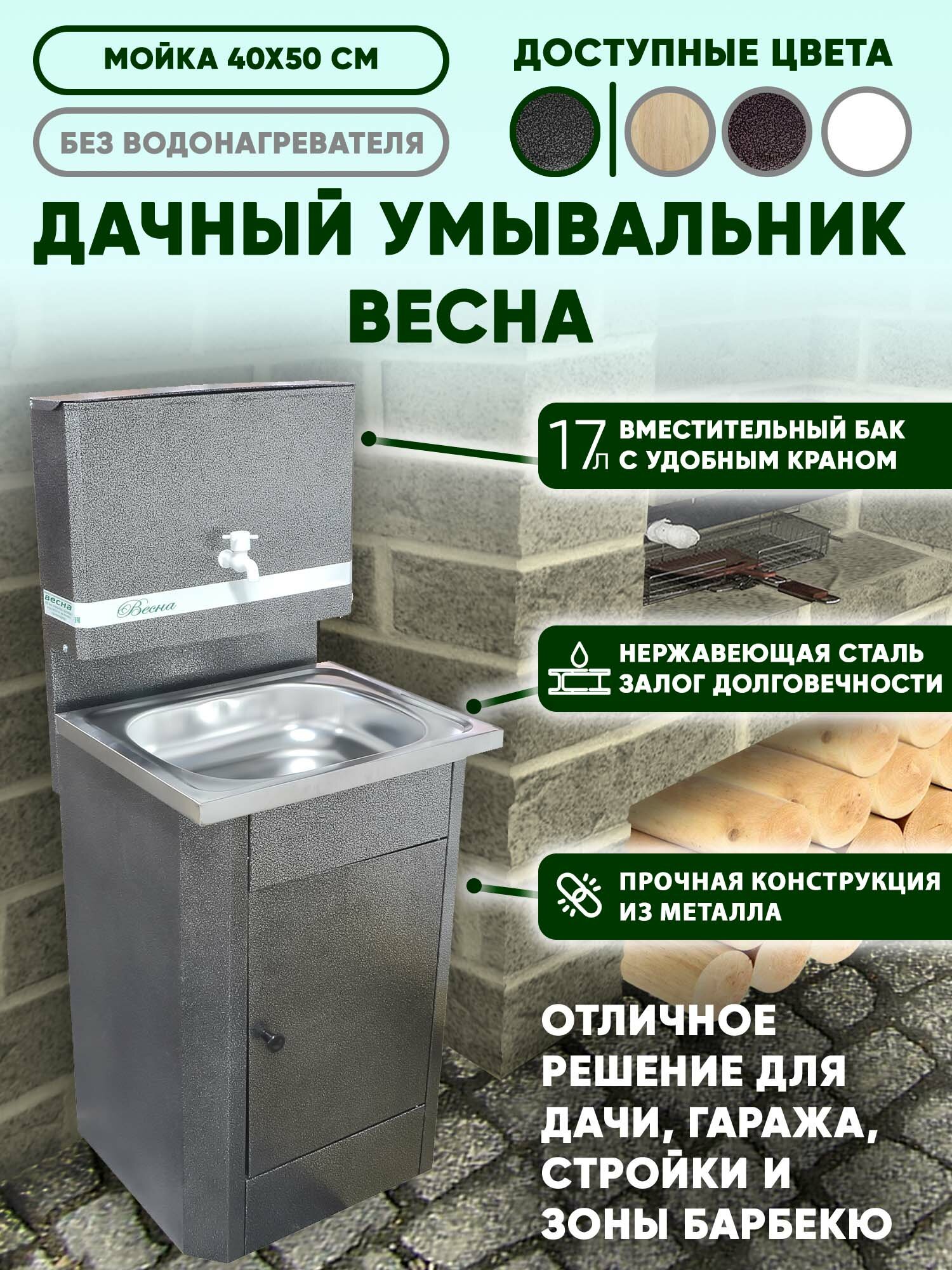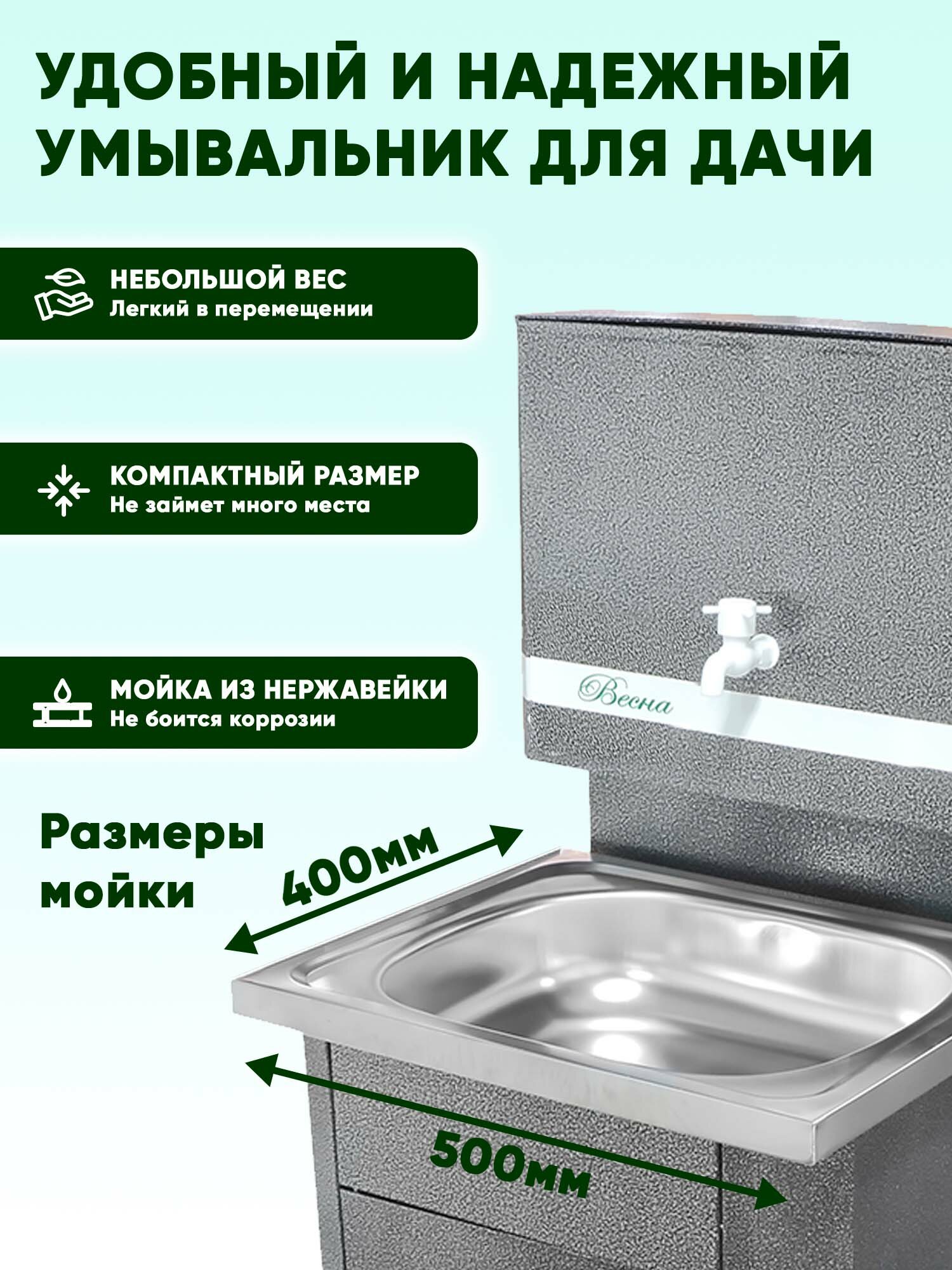 Купить Умывальник дачный "Весна" без подогрева, тумба, нержавеющая мойка, цвет серебро