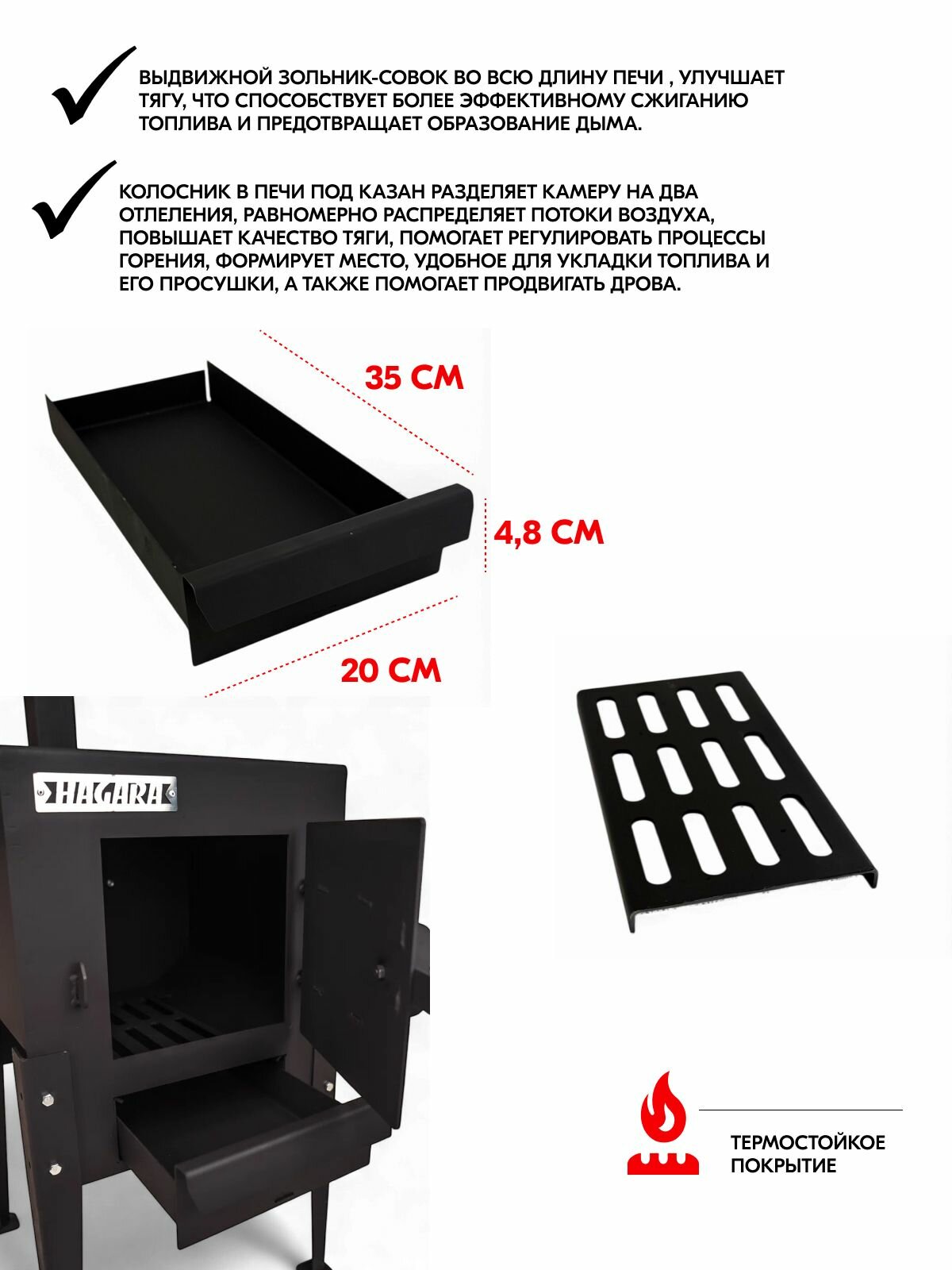| Особенности | разборная, с дверцей, с дымоходом |