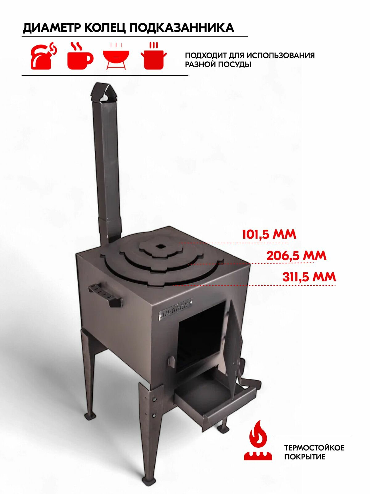 Печь для казана объемом 10 литров с ручками, съемные ножки, зольник