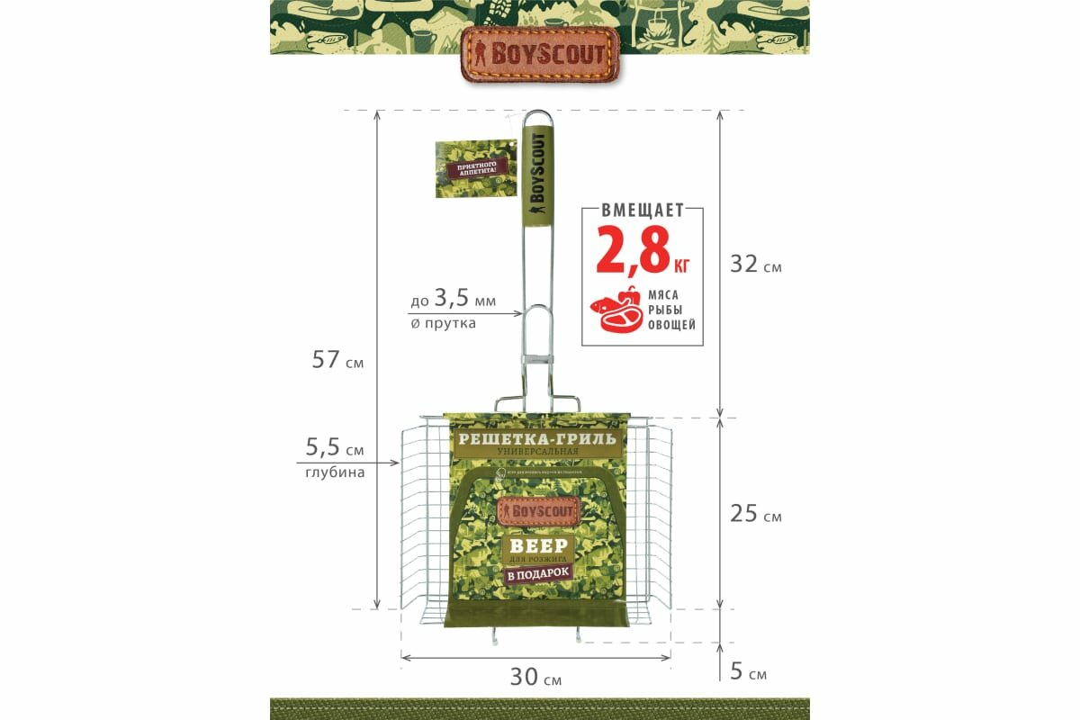 BOYSCOUT Решетка-гриль универсальная 57(+5)x30x25x5,5 cм интересное: