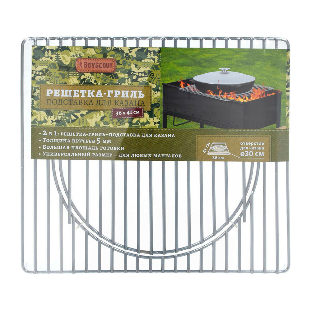 Решетка-гриль BOYSCOUT, для казана и мангала, 36x41 см, металлическая интересное: