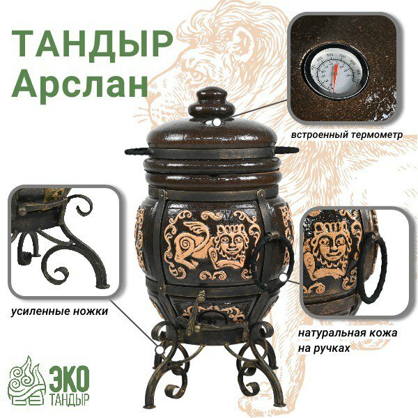 ТандырЭкоТандыр Арслан, цвет черный / тандыр с подставкой и термометром в комплекте, чехол в подарок