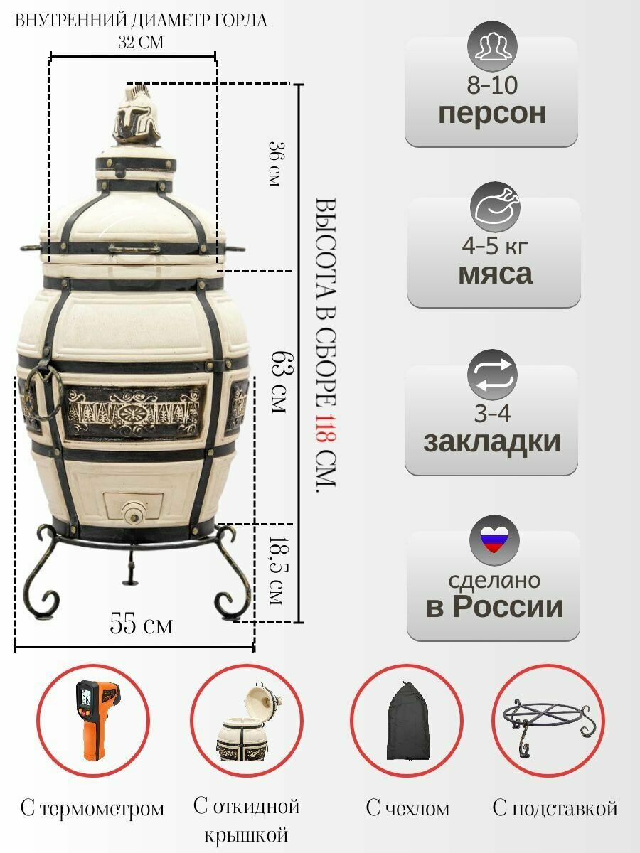 Тандыр Гектор с комплектом аксессуаров и электронным термометром интересное: