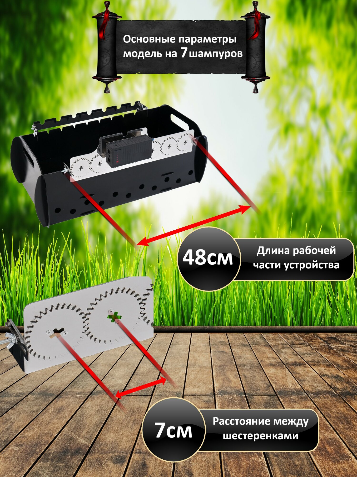 Emangal на 7 шампуров. Шампуры-самокруты, Устройство вращения шампуров с аккумулятором и светом Emangal на 7 шампуров. Электровертел Emangal интересное: